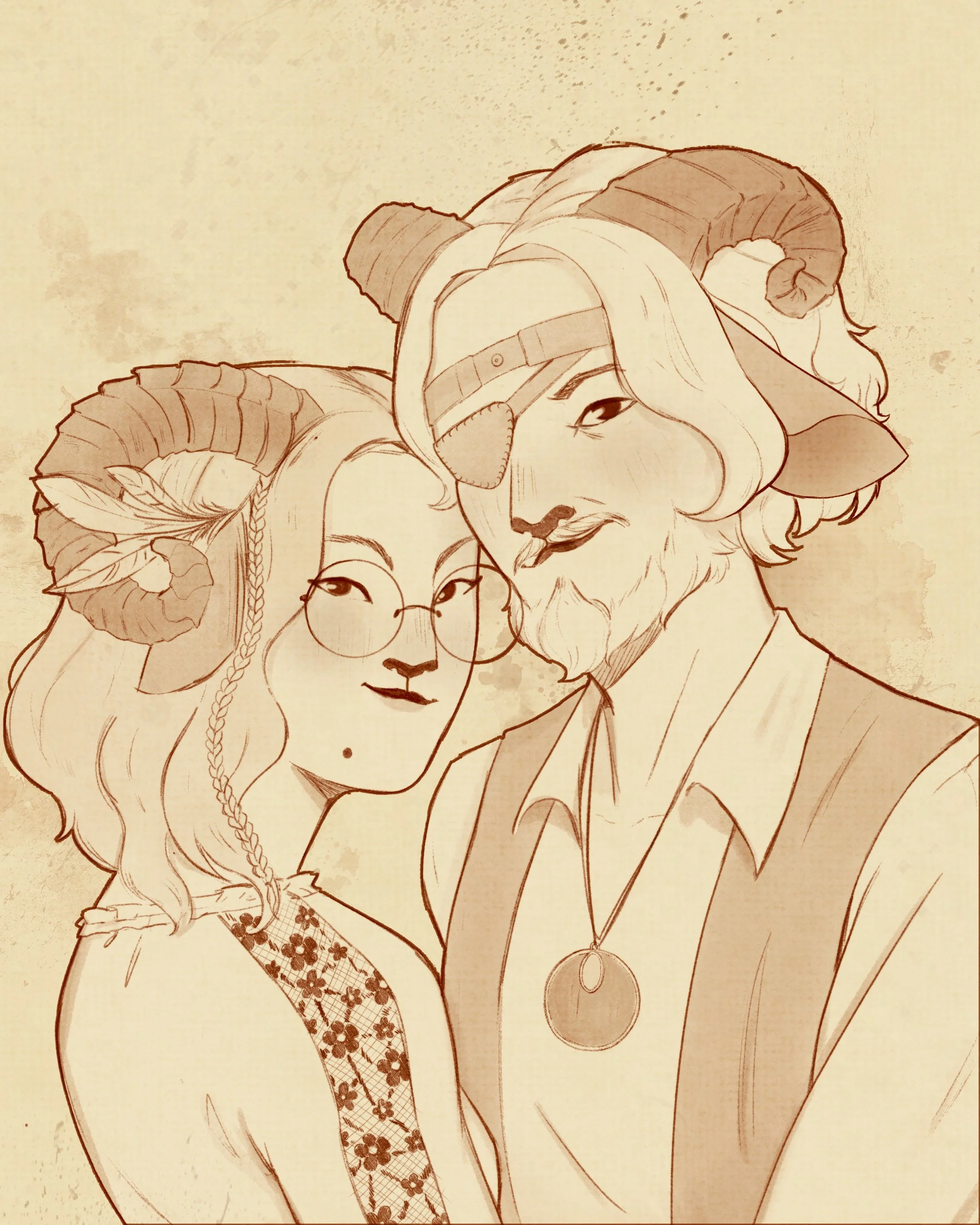 Grandpatents Portrait - Lineart